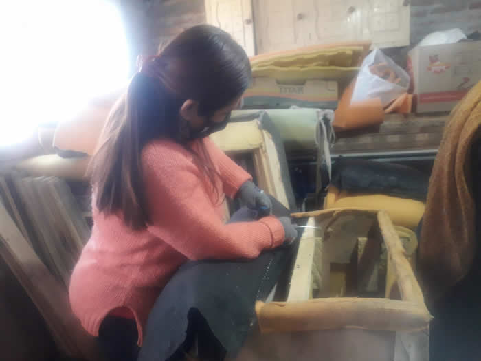 Comenzaron en plena pandemia ya que ellos su oficio era de albañil, el cual no estaban autorizada protocolarmente, se tuvieron que reinventar, para generar el sustento diario, el titular tenía conocimiento en tapicería para mueble del hogar y comenzó a capacitarse en fabricación de los mismo hoy es su fuente de trabajo y también su papá y su hermana, (desocupada), hoy son los que colaboran en el proyecto!!!