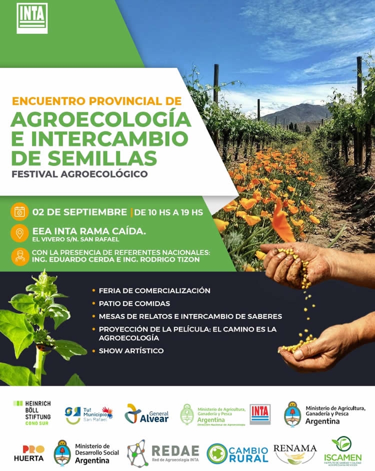 Ferias de comercialización Patio de comidas Mesas de intercambio de saberes Proyección de “Caminos de la Agro ecología” Shows artísticos Whatsapp Share Post Print 0Shares Navegación de entradas Actos en Monte Comán ADN Pyme en San Rafael