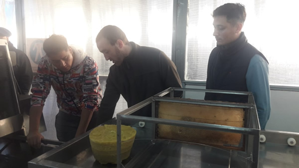 Octavio D’Agostino, Sebastián Casalonga y Guillermo Andrés Schulz, pasantes de 5º año, para la materia “Extension agraria” de la carrera de Ingeniería Agronómica recorrieron todo el proceso de extracción de miel y además visitaron la extensión experimental de INTA Rama Caída, la Pulpera San Rafael y la agencia de extensión de Malargue.